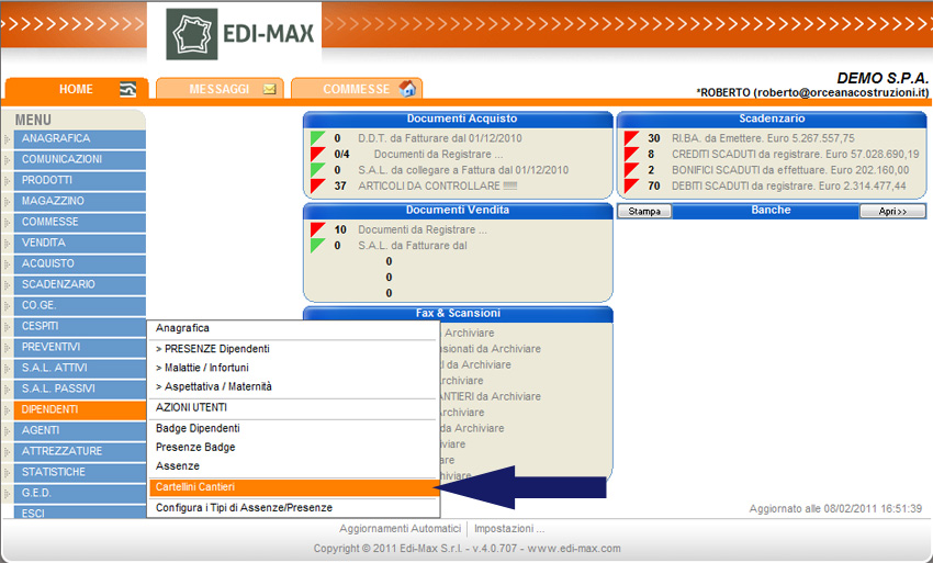 Per creare un cartellino di riconoscimento per cantiere con Edi-Max, dal menu principale selezionare la voce “Dipendenti” e “Cartellini Cantieri”.