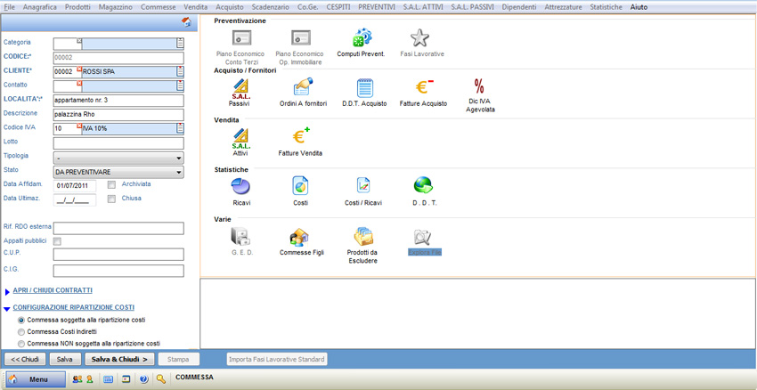 La commessa raccoglie tutti i dati di costo e di ricavo riguardanti un determinato cantiere. In questo modo è possibile fare delle statistiche, delle previsioni e delle valutazioni riguardanti costi e ricavi.