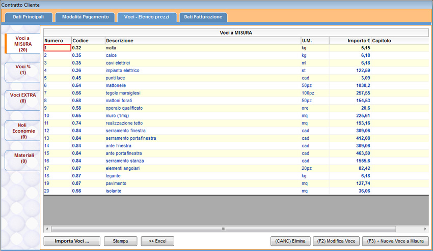 Effettuare l’inserimento di tutte le voci a misura del contratto.