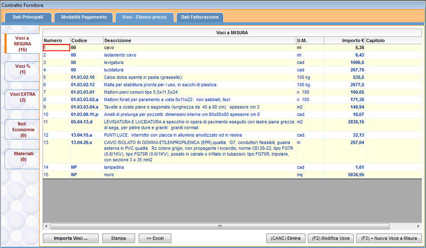 Effettuare l’inserimento di tutte le voci a misura del contratto.