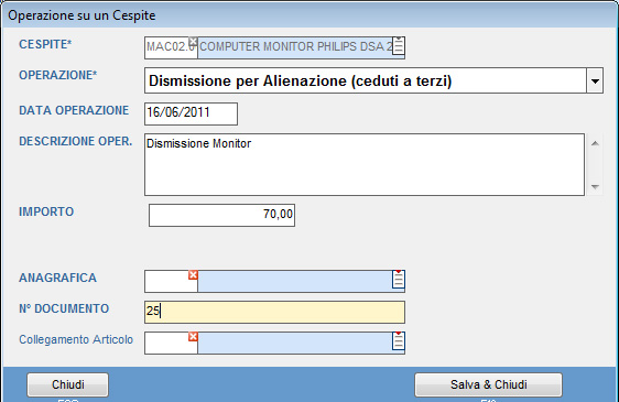 Per salvare l’operazione premere il pulsante “Salva & Chiudi”.