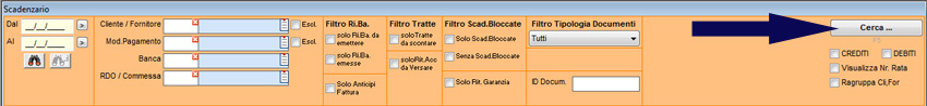 Solo Ri.Ba. da emettere: marcando questo checkbox vengono visualizzate solamente le scadenze legate a Ri.Ba. da emettere.