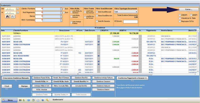 Crediti: marcando questo checkbox vengono visualizzate solamente le scadenze relative a crediti.