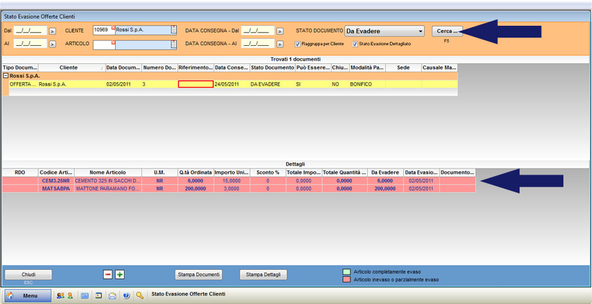 Stato Evasione Dettagliato: marcando l’apposito checkbox è possibile visualizzare lo stato di evasione dell’offerta in modo dettagliato.