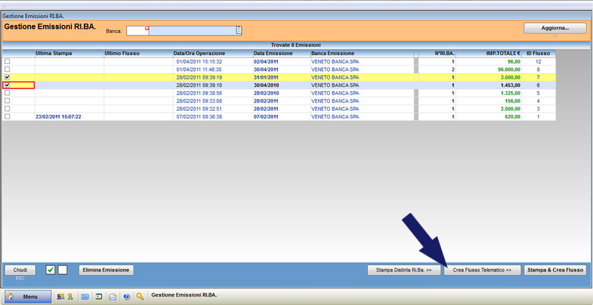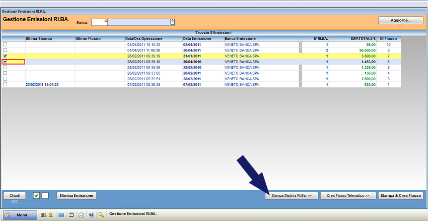 Premere il pulsante “Gestione Flussi Ri.Ba.” per visualizzare l’elenco dettagliato delle Ri.Ba. emesse.
