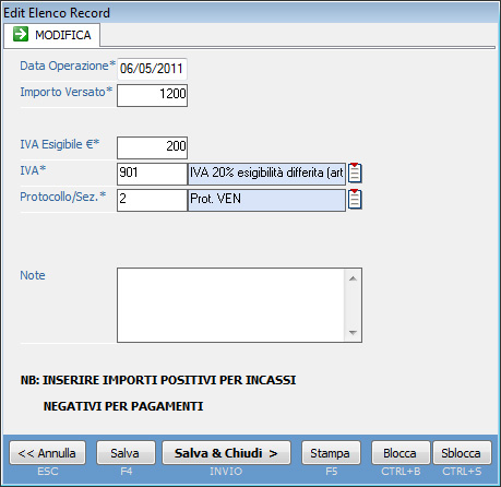 Per salvare l'operazione premere il pulsante "Salva & Chiudi".