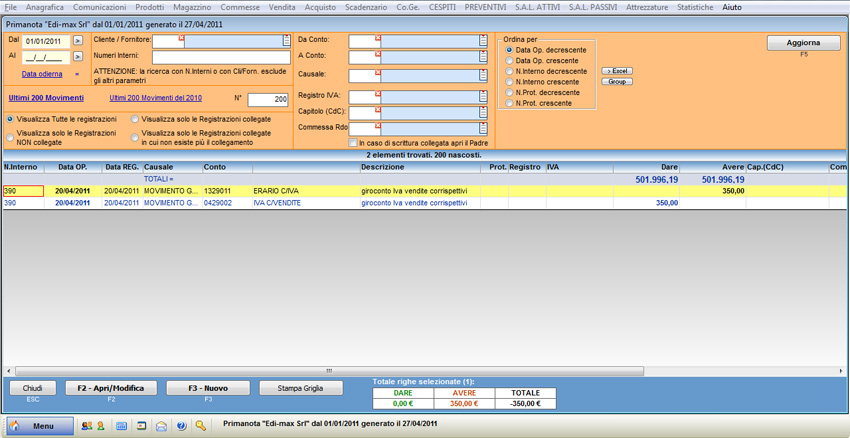 È possibile visualizzare le scritture appena create, selezionando “Co.Ge.” e “Gestione Prima Nota”.