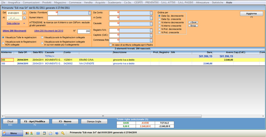 | Erario c/Iva | 2.540 |