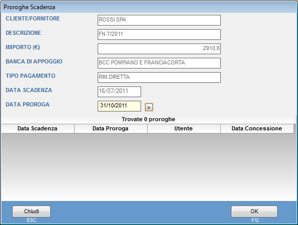 La funzione “Proroga Scadenza” consente di posticipare una determinata scadenza.