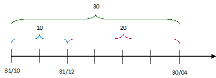 Calcolare la quota di competenza dell’esercizio in chiusura degli interessi relativi a titoli obbligazionari di proprietà dell’impresa. Il valore nominale dei titoli è di 1000 €, il tasso di interesse annuo è del 6% e la riscossione è semestrale anticipata (30/04 – 31/10).