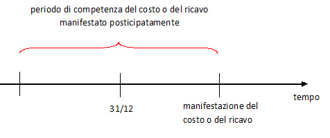 Lo schema seguente descrive molto bene il concetto di rateo: manifestazione posticipata del costo o del ricavo.