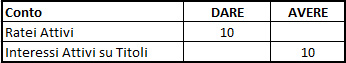 Il conto “Interessi Attivi su Titoli” è il conto di reddito acceso ai ricavi di esercizio.