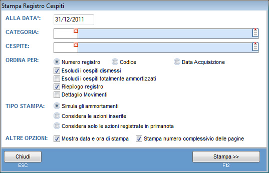 Escludi cespiti totalmente ammortizzati: selezionando questo checkbox è possibile escludere i cespiti totalmente ammortizzati.