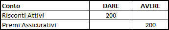 Il conto “Risconti Attivi” è il conto di reddito acceso ai costi sospesi. Con questa rilevazione, il saldo del conto “Premi Assicurativi” è pari a 2200 € ed esprime il costo dell’esercizio in corso.
