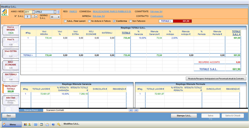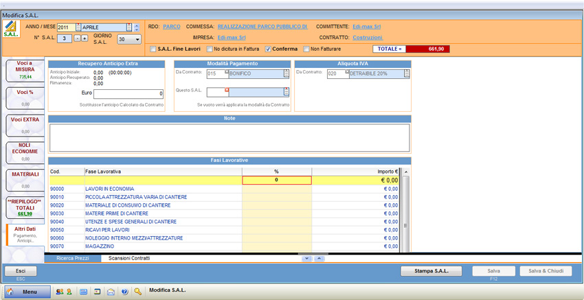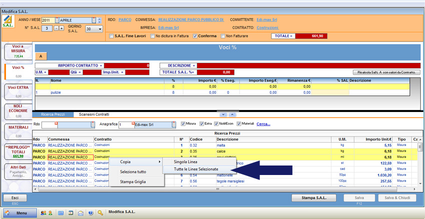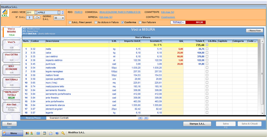 NB: Il software aggiorna automaticamente il contratto a seguito di ogni modifica apportata alle voci all’interno del S.A.L..