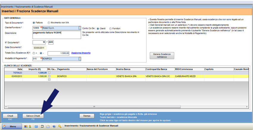 Per salvare la scadenza creata premere il pulsante “Salva & Chiudi”.
