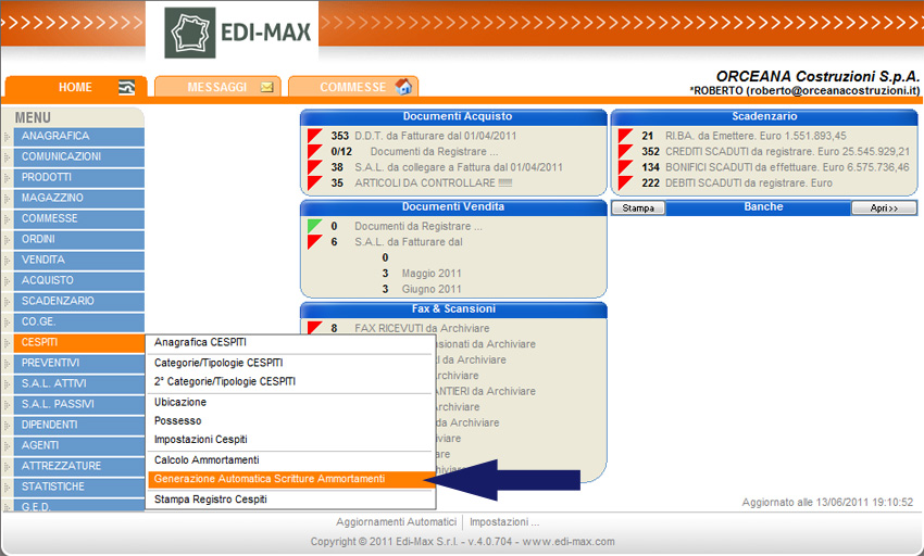 Edi-Max consente di generare le scritture contabili relative ai cespiti in modo automatico.