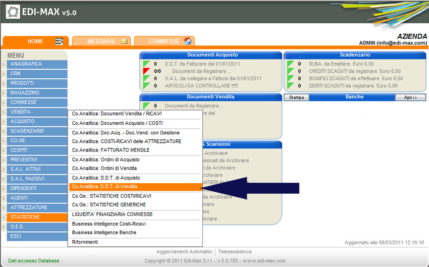 Edi-Max consente visualizzare le statistiche relative ai DDT di vendita. Dal menu principale selezionare la voce “Statistiche” e “Co. Analitica: DDT di Vendita”.